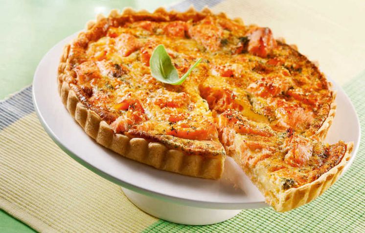 Verser doucement sur la pâte l'oignon et le saumon fumé puis la préparation.