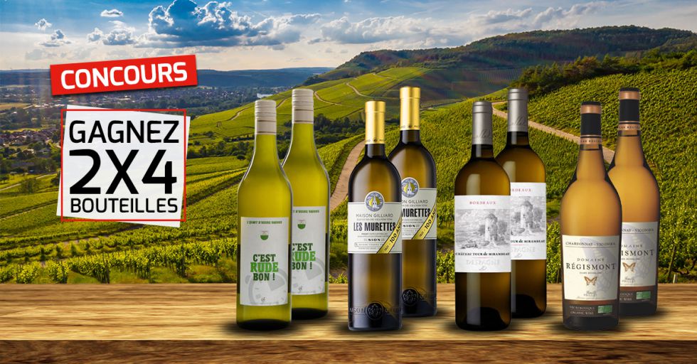 Notre concours est désormais terminé. Merci à tous pour votre participation! Toutes nos félicitations à Sandra Kunz et Marc Mottiez, ils remportent chacun un coffret de 4 bouteilles de vin blanc.