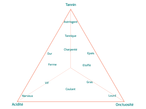 Pour le vin rouge, il y a trois sensations à évaluer: est-il acide? Est-il onctueux? Ou est-il tannique?