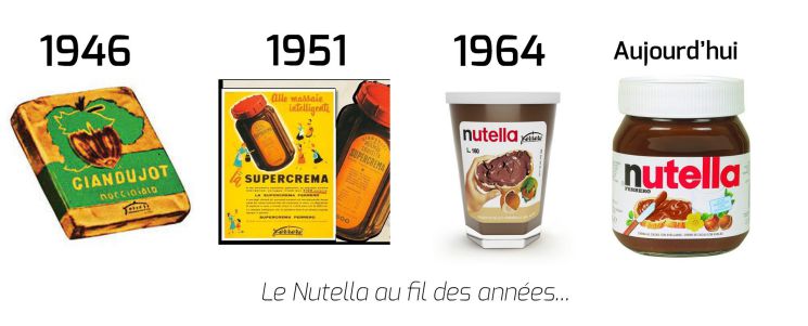 La première version du Nutella n’a rien à voir avec celle que l’on connaît aujourd’hui. Maître Pietro Ferrero lance un bloc solide de chocolat avec des noix que l’on découpait pour en poser sur du pain. La légende raconte qu’un jour, un bloc de Giandujo fond au soleil, Pietro Ferrero décide ainsi de le commercialiser comme pâte à tartiner. Le succès est immédiat! Voulant un nom plus original et international, la marque Ferrero décide sur le nom "Nutella", "nut" qui veut dire noix en anglais et "ella" pour donner une touche italienne.