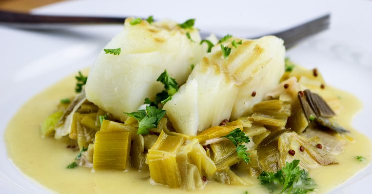 Filet de féra sur fondue de poireau et sauce à l’absinthe