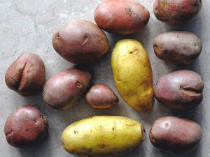 Commencez par cuire les pommes de terre dans une casserole d’eau bouillante, jusqu’à ce que la pointe d’un couteau rentre facilement dans la chair. Laissez-les refroidir un moment.