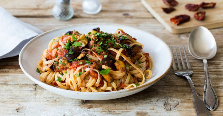 Pendant ce temps, faire bouillir de l'eau salée. Ajoutez un bouillon de légumes et plongez les tagliatelles. Faites cuire pendant 7 minutes pour qu'elles soient al dente.