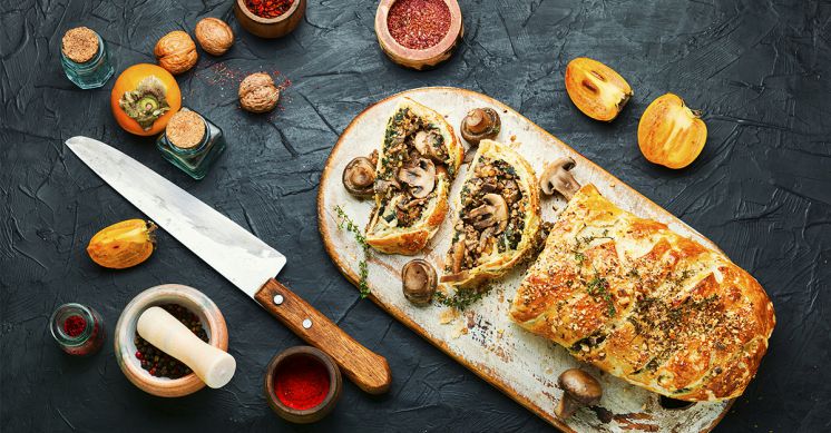 Cette recette est une alternative végétarienne du fameux filet de bœuf Wellington. On en retrouve les premières traces en Angleterre au début du 17ème siècle, puis il disparaît tragiquement des livres de cuisine dans les années 1980.